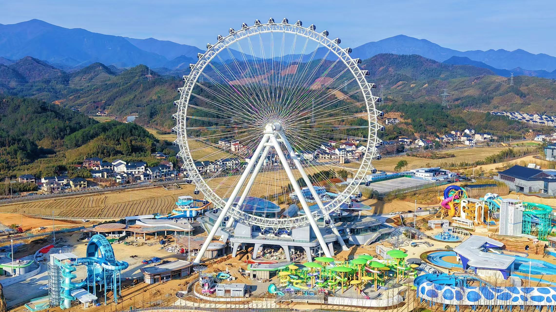 作為天目山未來(lái)谷——水世界的核心設(shè)施,該摩天輪總高達(dá)131.4米,象征著“一生一世”的愛(ài)情美好寓意,轉(zhuǎn)輪采用全鋼索結(jié)合三管桁架式結(jié)構(gòu),配備48個(gè)橢圓形高端轎廂,每個(gè)轎廂可容納12人,單圈運(yùn)轉(zhuǎn)時(shí)間約30分鐘,滿載可同時(shí)接待576名游客,建成后將成為杭州市新地標(biāo),為帶動(dòng)長(zhǎng)三角地區(qū)旅游發(fā)展作出積極貢獻(xiàn)。