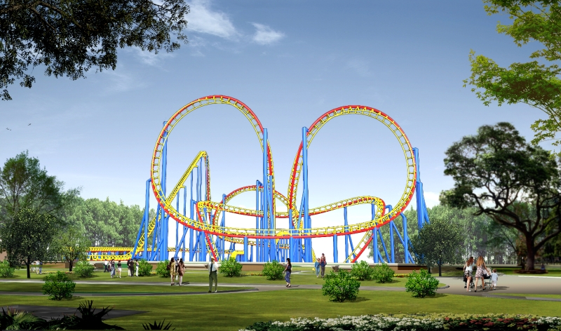 項(xiàng)目亮點(diǎn):是目前世界上環(huán)數(shù)最多的過山車,其軌跡的設(shè)計計算、軌道的制作安裝具有極高的難度。